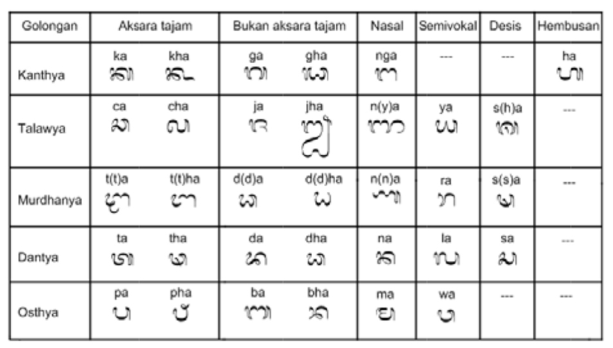 b. Ejaan fonem konsonan (aksara wyanjana)